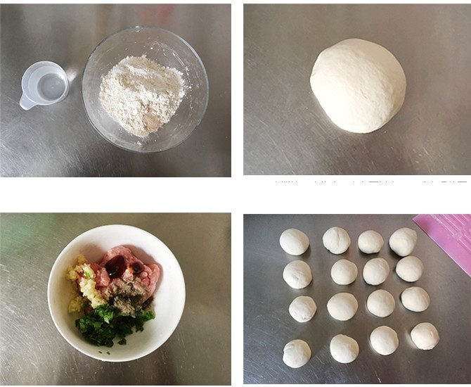 Chia bột làm 16 phần bằng nhau sau đó cán bột cho độ mỏng còn khoảng 3-4mm rồi cho nhân thịt vào và gói bột lại.