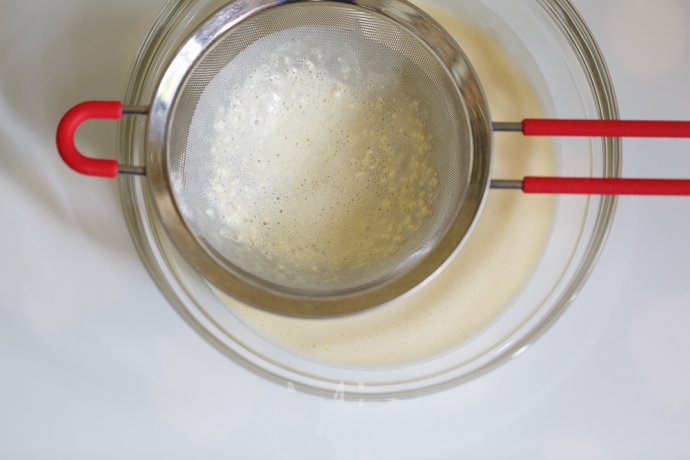 Lọc hỗn hợp bột gạo qua một cái rây cho hỗn hợp không lợn cợn.