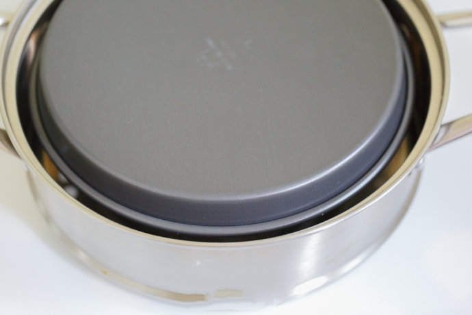 Đổ hỗn hợp bột đã trộn vào khuôn làm bánh gato sau đó bạn cầm khuôn bánh lên gõ nhẹ nhàng xuống bánh phẳng mặt. Đậy kín khuôn bánh. Tiếp đó cho khuôn bánh vào nồi hấp đã đun sôi nước. Bạn hấp khoảng 45 phút là bánh chín.