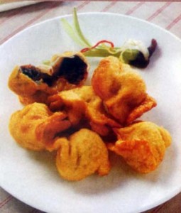 Trộn đều khoai sọ với đường rồi viên thành những viên tròn, đặt vào giữa vỏ bánh gối, gói kín lại. Thả bánh vào chảo dầu chiên chín giòn vàng.