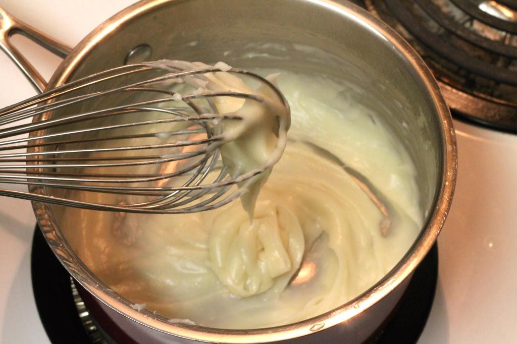 Làm phần bột tang zong: cho tất cả nguyên liệu của phần làm bột tang zong vào nồi, đặt lên bếp khuấy đều cho tới khi hỗn hợp đặc lại là được.