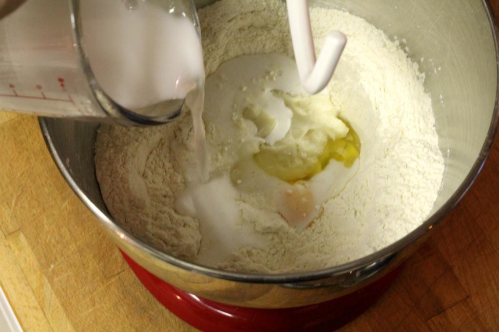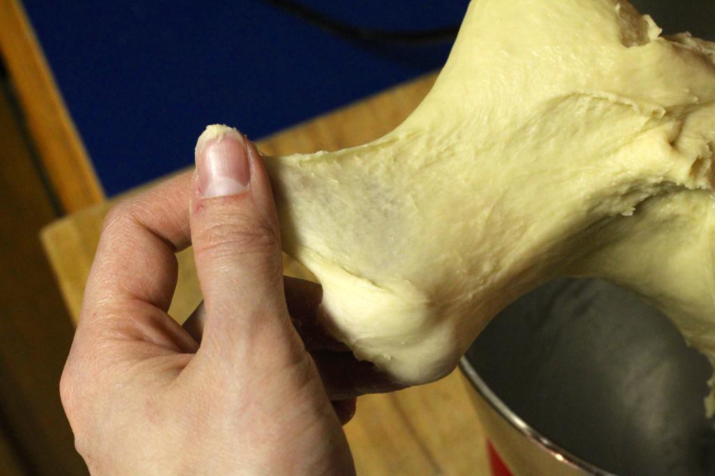 Cho tất cả phần nguyên liệu vỏ bánh và tô, thêm phần bột tang zong vừa làm, nhồi thật kỹ cho hỗn hợp đồng nhất. Sau đó cắt nhỏ 30g bơ cho vào nhồi tiếp thêm 15 phút nữa.