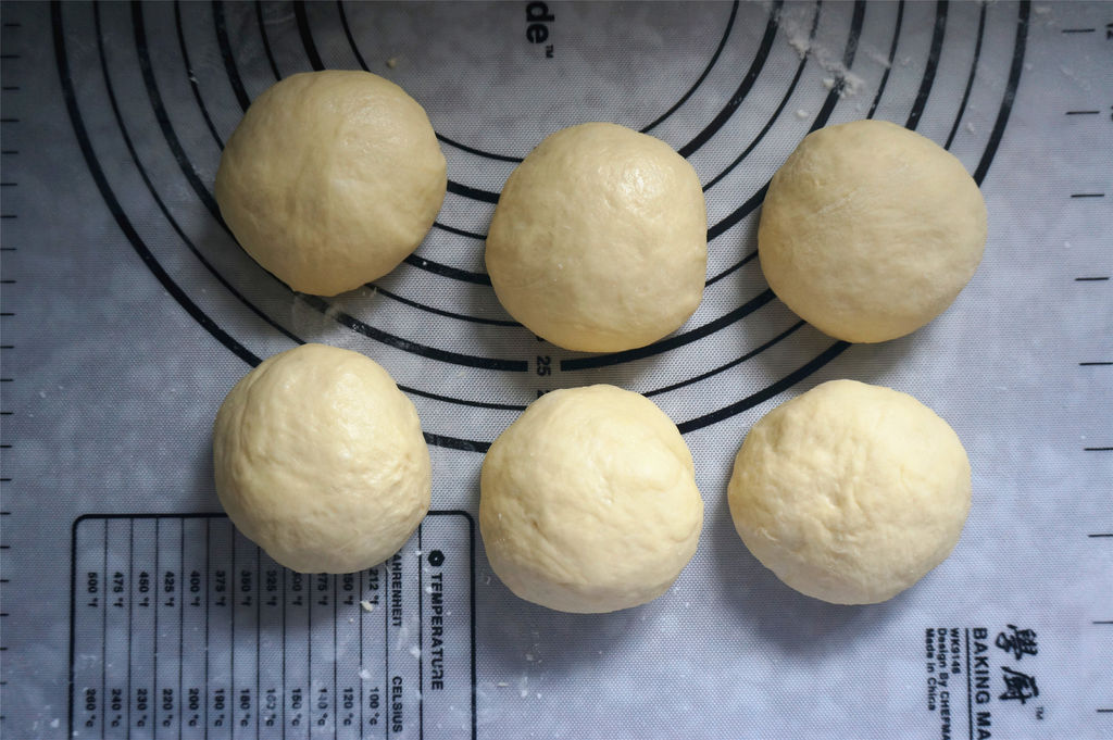 Sau khi ủ lấy khối bột ra nhào qua rồi chia thành 6 phần bằng nhau, vo tròn rồi để bột nghỉ thêm 15 phút.
