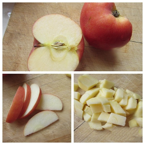 Táo rửa sạch, một quả thái lát, một quả thái miếng nhỏ.