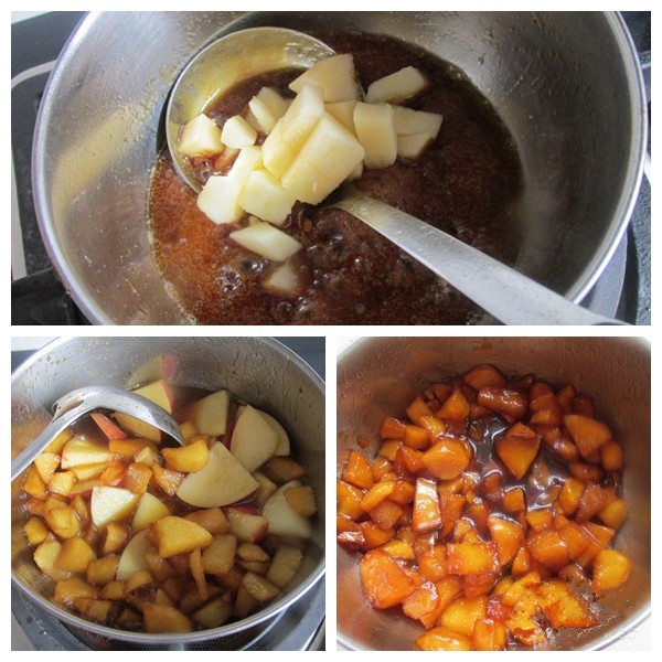 Khi đường chuyển màu nâu thì bạn cho táo thái miếng nhỏ vào đảo đều sau đó cho táo thái lát vào đun sôi. Bạn đun nhỏ lửa cho đến khi táo ra nước và hơi săn lại là được.