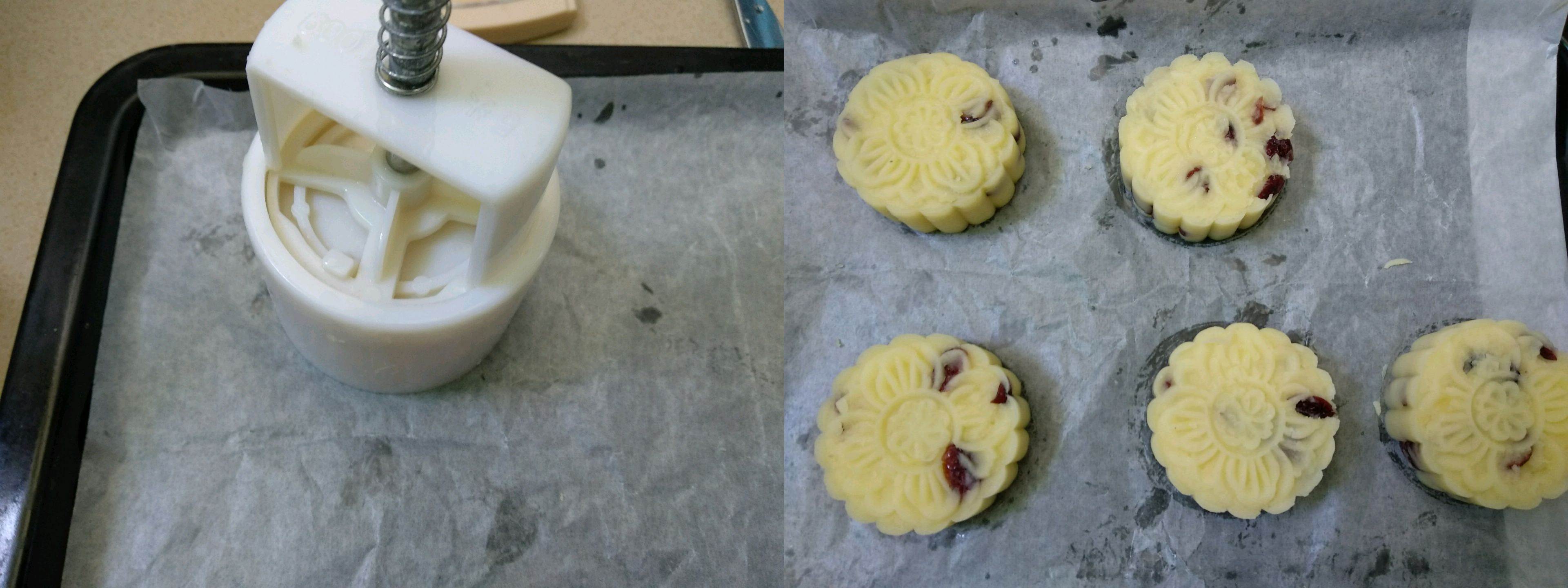 Ép bánh xuống khay nướng đã lót giấy nướng. Cho khay bánh vào lò nướng ở 180 độ C trong khoảng 15 phút là được. (Bạn nhớ làm nóng lò trước khi nướng bánh).