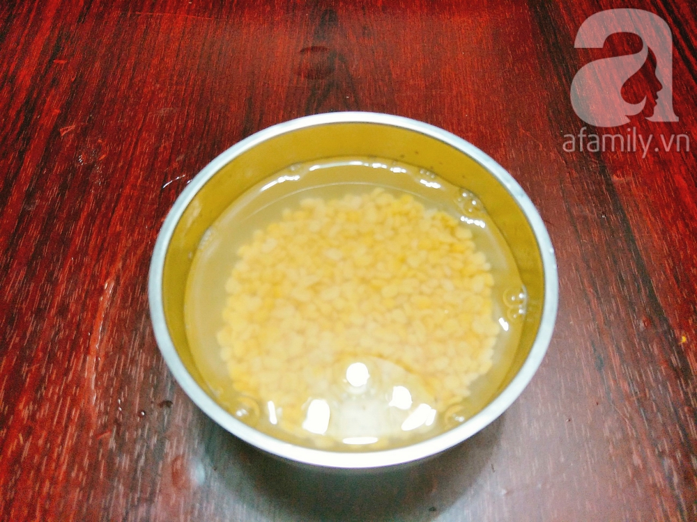 Đậu xanh vo sạch rồi ngâm nước khoảng 1 tiếng cho mềm, nếu bạn dùng hạt sen khô thì cũng ngâm nước để khi nấu cho nhanh chín nhé.