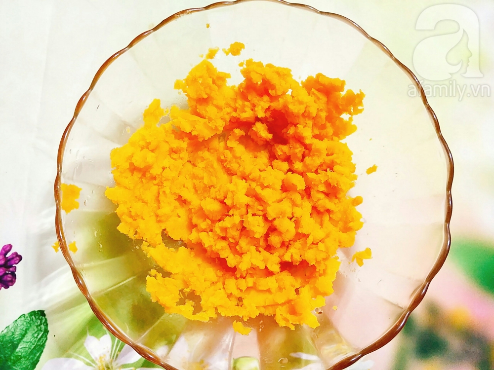 Khoai lang nạo sạch vỏ sau đó cắt thành những miếng to vừa, rửa lại cho sạch rồi đem hấp cho khoai chín mềm. Lấy khoai vừa hấp chín cho vào tô, thêm 2 thìa đường và dùng thìa nghiền cho khoai nhuyễn mịn.