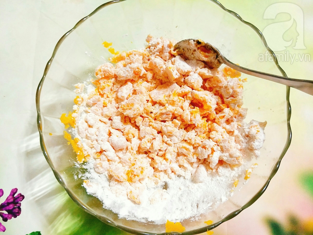 Cho bột nếp, bột năng vào khoai và trộn đều sau đó nhồi cho khoai thành 1 khối mềm dẻo, tiếp theo bạn lấy từng ít khoai nặn thành các viên bi tròn to hoặc nhỏ tùy theo ý thích.