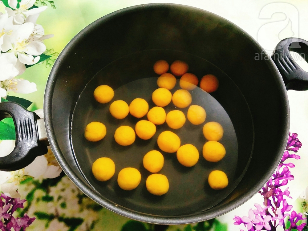 Cho nước vào nồi nấu cho sôi lên sau đó cho khoai lang dẻo vào luộc khoảng vài phút là chín, vớt ra để cho nguội.