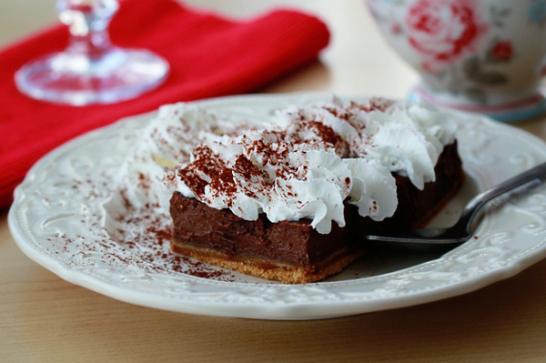 – Khi chuẩn bị ăn, bạn cắt bánh cheesecake thành từng miếng vuông nhỏ nhé! |