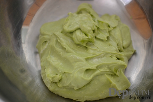 Dùng máy xay sinh tố xay nhuyễn thịt trái bơ và nước cốt chanh. Cho hỗn hợp vừa xay vào âu cream cheese và dùng máy đánh trứng đánh đều.