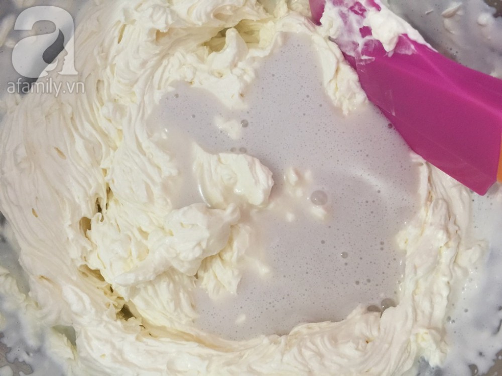 Đánh bông cứng kem tươi heavy cream với 2ml chiết xuất vanilla.