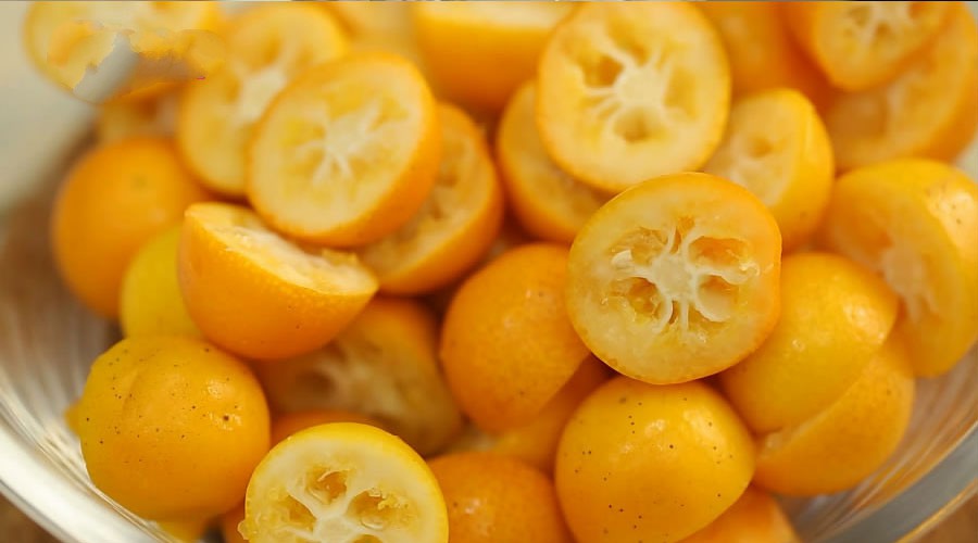 Quất rửa qua sau đó dùng muối hạt để xát trên bề mặt quả quất cho sạch rồi rửa lại quất. Bổ đôi quả quất, loại bỏ hạt.