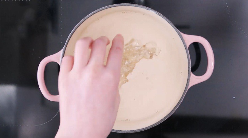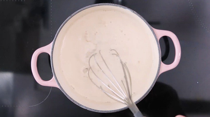 Thêm gelatin đã làm mềm vào nồi trà sữa.