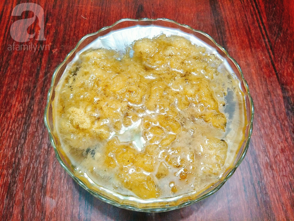 Bạn cho đường nâu, đường hoa mai vào nồi, thêm lượng nước vừa phải sao cho nước đường đủ ngọt. Bật bếp và khuấy đều nấu cho nước đường sôi thì tắt bếp, để nguội sau đó rót nước đường vào bát hoặc hũ sạch rồi đem cất ngăn mát tủ lạnh, khi ăn mới lấy nước đường ra.