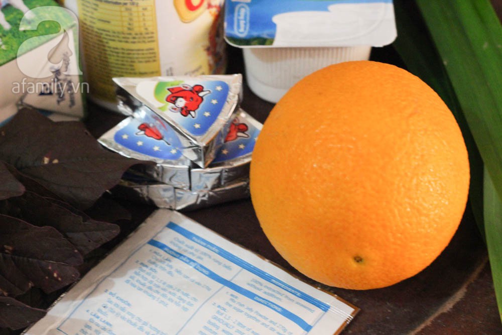 Vắt cam, lọc bỏ tép cam và giữ lại khoảng 200ml nước cam. Mình không có củ dền nên sử dụng rau dền đỏ. Rau dền rửa sạch, đun sôi với 350ml nước, lọc bỏ bã giữ lại 300ml nước rau dền đỏ.