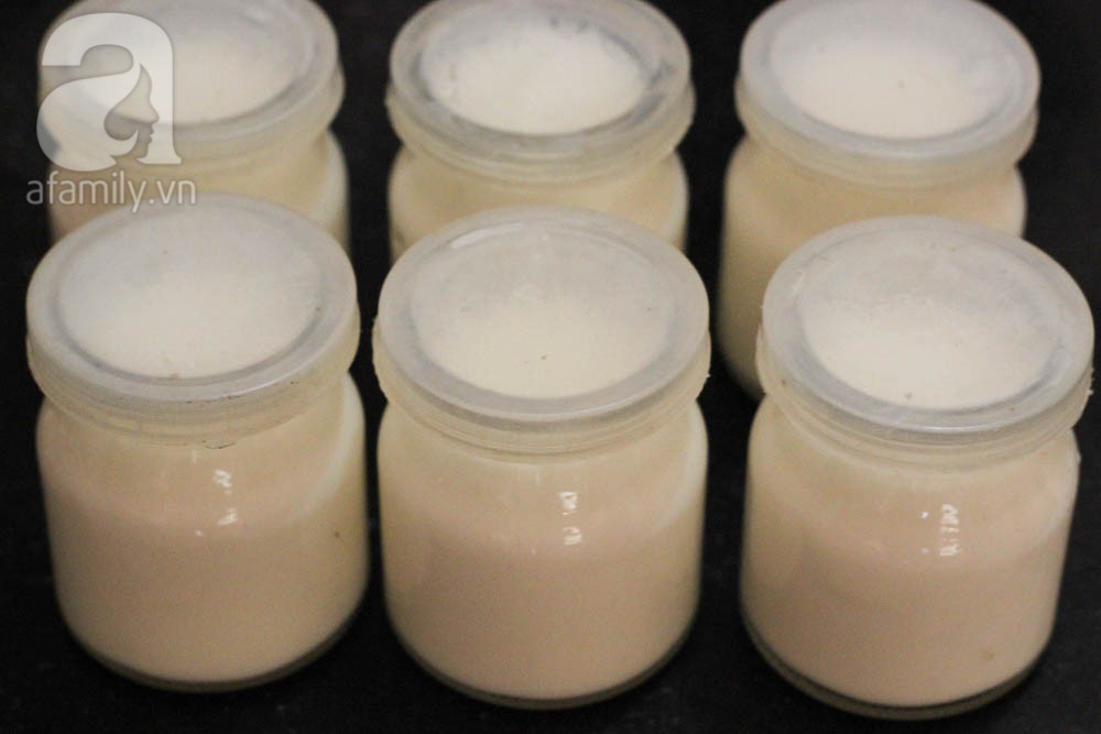 Sau đó đổ sữa chua vào những hộp nhỏ đem đi ủ.