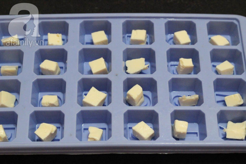 Cắt phô mai thành từng miếng nhỏ, xếp vào khuôn thạch.