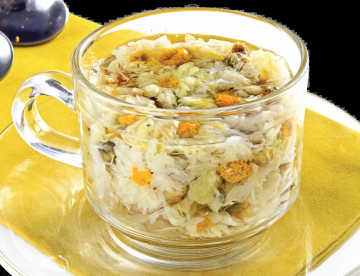 Trà cúc cam thảo May 12, 2012 $ave Nguyên liệu: 10g trà cúc 5g cam thảo Các bước thực hiện: Bước 1 Cam thảo xắt thành từng lát mỏng, cho lần lượt cam thảo và trà cúc vào ly. Bước 2 Nấu bằng bình thủy điện 10ml nước sôi, tráng sơ, đổ ra, nhấn tiếp lấy khoảng 100ml nước sôi cho vào ly trà, sao cho ngập cam thảo và trà cúc là được. Nguon: Thy Huynh