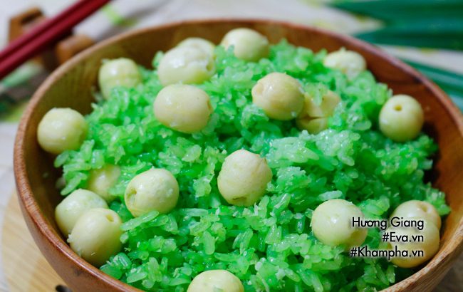 Xôi lá dứa hạt sen dẻo ngon với màu sắc và hương vị rất hấp dẫn.