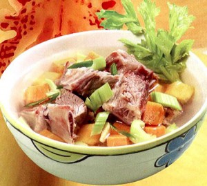 Khoai lang ruột đỏ 500 g; Sườn non 300 g; Rau cần tây 200 g; Hạt nêm 2 thìa; Đường 1 thìa; Tiêu 1/2 thìa.