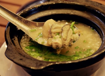 Cho gạo vừa rang vào nồi cơm điện, bật chế độ Cook đến khi nước sôi khoảng 10 phút thì rút điện, om trong vòng 20 phút, sau đó bật chế độ cook lần nữa là cháo nhừ. Khi cháo nhừ cho phần nước hàu vào, đun sôi lần nữa, nêm nếm gia vị vừa ăn.
