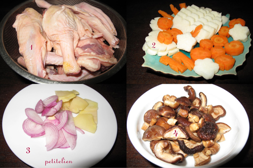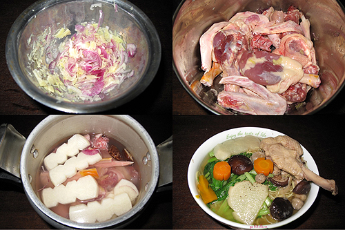 Cà rốt, củ sắn tỉa hoa cho đẹp, cắt miếng dày khảng 0,5cm.