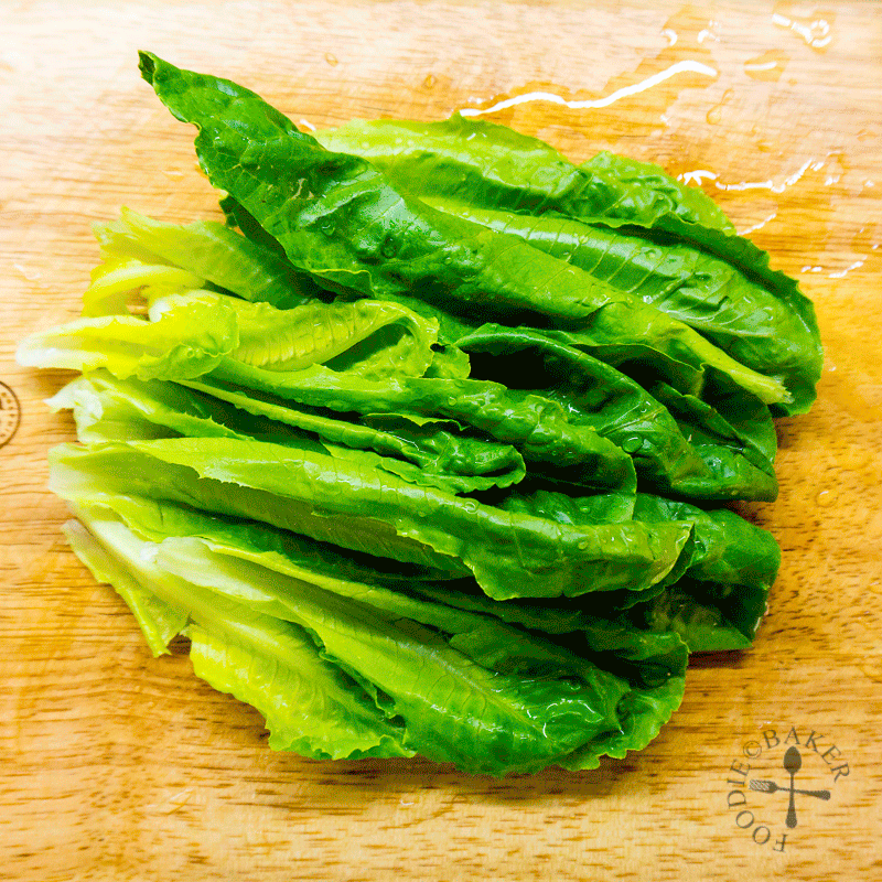 Rau xà lách rửa sạch, cắt khúc nhỏ dài khoảng 1,5cm. Dưa chuột thái lát tròn, cà chua thái miếng nhỏ.