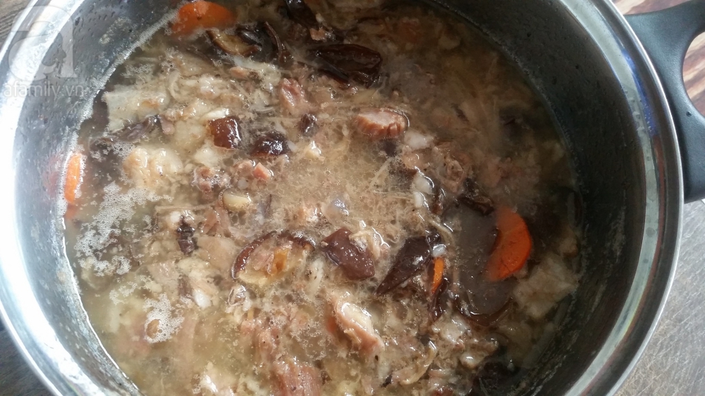 Để các nguyên liệu sôi lên rồi thêm vào nồi 3 bát ăn cơm nước lọc rồi đun nồi thịt cho sôi, thêm 1 thìa bột canh, 1/2 thìa bột ngọt, 1 thìa tiêu, đảo cho đều, sau đó vặn lửa nhỏ, đun nồi thịt li riu trên bếp. Đun khoảng 15 phút thì cho cà rốt tỉa hoa vào nấu cùng. Khi nồi thịt còn xâm xấp mặt nước, miếng thịt mềm, nhừ thì rắc thêm chút hạt tiêu rồi tắt bếp.