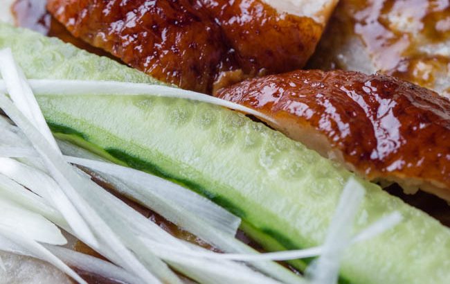 Khi ăn cuốn thịt vịt cùng với đầu hành cắt khúc và dưa leo cắt khúc cuốn với bánh tráng, chấm cùng nước sốt đậu ngọt là ngon tuyệt cú mèo. Với cách làm vịt quay kiểu này, da rất giòn, thịt còn hơi hồng đỏ, mềm, đậm đà và thơm phức.