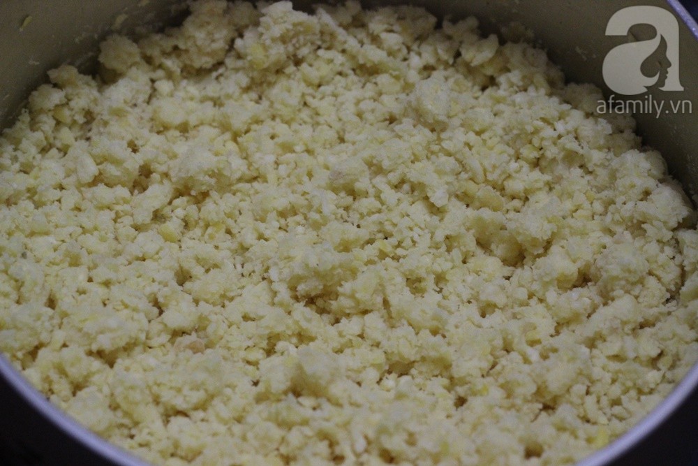 Đậu xanh sau khi đồ chín thì đánh cho tơi, nhuyễn.