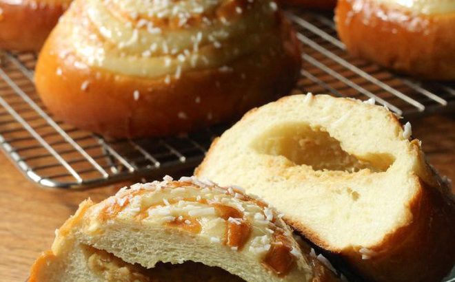 Bánh mì ngọt nhân dừa với phần vỏ bánh mềm ẩm bên trong là phần nhân custard ngọt thơm chắc chắn sẽ hấp dẫn cả nhà. Nguyên liệu: Phần nhân: 128ml nước cốt dừa 1/2 quả vani hoặc 1/2 thìa cafe vani 1 lòng đỏ trứng 28g đường 1.5 thìa súp bột ngô Xíu muối […]