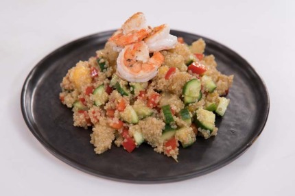 Thời gian thực hiện 20 phút Nguyên liệu: 1 trái xoài 8 con tôm lớn 80 g quinoa 2 lát thơm (dứa) 1 trái dưa leo Nhật 1/2 trái ớt chuông đỏ 1 muỗng (tbsp) mật ong 1 muỗng chanh vắt 1 muỗng dầu olive Muối Tiêu Thực hiện Xoài, thơm, dưa leo và ớt chuông […]