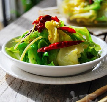 Bắp cải trộn tỏi phi May 11, 2012 $ave Nguyên liệu: 1 cái bắp cải Gừng Tỏi Vài quả ớt Các bước thực hiện: Bước 1 Bắp cải rửa sạch, cắt miếng vừa ăn, để ráo nước. Luộc bắp cải với lửa to đến khi chín rồi nhúng qua nước mát để giữ màu xanh. Bước 2 Trộn bắp cải với chút gia vị, đường, giấm cho vừa miệng. Tỏi băm nhỏ, gừng thái chỉ. Bước 3 Đặt chảo lên bếp, đợi nóng cho ít dầu đậu nành. Sau đó phi thơm tỏi, gừng và ớt để nguyên quả. Trút tỏi phi đang còn nóng lên bắp cải. Trộn thật đều và thưởng thức. Nguồn từ trang: amthuc365