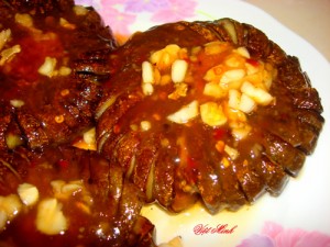 Bước 4: Xúc cà tím ra đĩa và dội nước xốt còn lại lên trên.