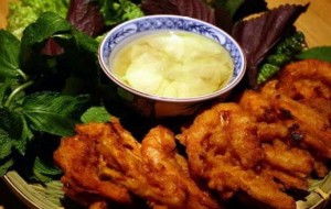 * Vớt bánh tôm ra khăn giấy cho thấm dầu.