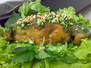 Cá có thể dọn cùng với bún tươi hoặc bún khô xào với gia vị cho vừa miệng. Thêm rau sống, bánh tráng và chén nước mắm chua ngọt nữa là ngon vô cùng.