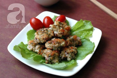 Viên chả thành những viên tròn rồi ấn hơi dẹt, cho vào chảo dầu nóng chiên vàng hai mặt. |