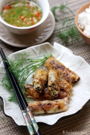 Nem cá February 20, 2012 $ave Nguyên liệu: 600 thịt cá trắm đã lọc bỏ xương 200g thịt lợn vai xay 20 cái nấm hương khô Một nhúm mộc nhĩ khô 1/2 củ hành tây, 1 củ cà rốt nhỏ 1 lòng đỏ trứng gà 1 nắm rau thìa là 1 thìa canh dầu ăn Bánh đa nem Gia vị gồm: Muối/bột canh, hạt nêm, tiêu hạt xay Các bước thực hiện: Bước 1 Thịt cá xay/hoặc băm nhỏ tương đương thịt lợn vai. Nấm hương, mộc nhĩ ngâm nở, thái nhỏ. Hành tây thái ngang củ, băm hạt lựu nhỏ. Thìa là bỏ gốc, rửa sạch, vẩy ráo rồi thái nhỏ. Cà rốt nạo sợi. Bước 2 Cho cá, thịt, mộc nhĩ, nấm hương, hành tây, thìa là, cà rốt, lòng đỏ trứng vào một bát to. Nêm vào gia vị gồm muối/bột canh, hạt nêm, hạt tiêu. Trộn đều các nguyên liệu, để khoảng 15′ cho gia vị thấm đều. Trải bánh đa nem ra, cho một nhúm thịt vào và cuộn chặt lại. Chiên đều hai mặt lửa vừa đến khi nem chín vàng. Nem cá dùng với nước mắm nem thông thường nhưng có bỏ thêm thìa là băm nhỏ vào cho ra vị nem cá. Nguồn bài từ kiwisite