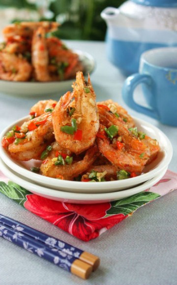 Tôm chiên tỏi ớt May 14, 2012May 14, 2012 $ave Nguyên liệu: 300g tôm tươi Hành lá thái nhỏ, bột chiên Ớt xanh, ớt đỏ, muối, tỏi, hạt tiêu Các bước thực hiện: Bước 1 Tôm rửa sạch, rạch lưng lấy chỉ đen, cắt sâu thêm một chút để thịt tôm dễ ngấm gia vị. Ớt xanh, ớt đỏ, tỏi đem băm nhỏ. Bột chiên đổ ra bát, cho tôm vào tẩm bột rồi để ra bát. Bước 2 Đun nóng dầu ăn trong chảo, cho tôm vào chiên. Tôm chín vàng, tỏa mùi thơm nức, dùng vợt lấy tôm ra cho ráo dầu. Bước 3 Lấy 1 cái chảo khác, cho chút dầu ăn vào đun nóng, phi thơm tỏi băm rồi cho ớt xanh – đỏ và hành vào. Cho tiếp tôm vào luôn, rắc tiếp muối tiêu, độ mặn vừa phải rồi đảo đều. Để lửa vừa, rang cho tôm khô, ngấm gia vị, hành lá vừa khô là được. Tắt bếp, cho tôm ra đĩa ăn nóng. Nguồn từ trang: xinhxinh