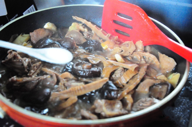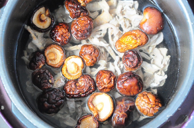 Măng, nấm rửa sạch cho vào nồi áp suất đun khoảng 20 phút rồi vớt ra.