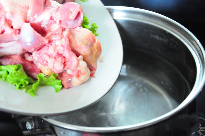 Cho một ít nước vào nồi, thêm bồ câu và rượu vào đun sôi rồi rửa sạch lại.