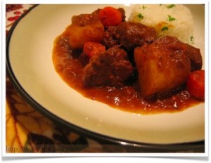 Bò hầm February 17, 2012February 17, 2012 $ave Nguyên liệu: 1100g thịt bò (loại beef stew meat) 1/4 cup dầu olive 2 muỗng súp tomato paste đóng hộp 2 củ hành tây, 2 nhánh cần tây 3 củ cà rốt + 1 củ cà rốt (để riêng) 3 củ khoai tây lớn, 4 tép tỏi 1 muỗng cà phê oregano khô, 1 muỗng cà phê húng tây khô 3 lá thơm (bay leaf) 2 muỗng súp bột mì Tây 1 cup rượu nho đỏ 2 muỗng súp bơ Muối biển, tiêu, đường Các bước thực hiện: Bước 1 Cần tây rửa sạch, tước bỏ phần xơ già. Cắt lát nhỏ, mỏng. Lấy 1 củ cà rốt, gọt vỏ cắt lát nhỏ như cần tây. Cho cần tây và cà rốt vào nồi (hoặc cho máy xay nhỏ, rồi xào xơ với dầu cho thơm, bỏ vào hầm rau sẽ nhanh mềm hơn). Thịt bò cắt khúc to khoảng 3cm. Cho 1/4 cup dầu olive vào chảo. Dầu vừa nóng, cho thịt vào chiên xém vàng các mặt. Chuyển thịt vào nồi (1). Rắc đều húng tây, bạc hà, một ít tiêu lên thịt. Cho lá thơm, tomato paste, tỏi băm/ép nhỏ, 1 muỗng súp đường, 1 muỗng súp muối vào nồi. Bước 2 Cắt hành tây ra hột lựu. Bắt chảo lên bếp, cho 1 muỗng súp dầu olive vào. Dầu vừa nóng, cho hành tây vào xào cho thơm. Cho vào 2 muỗng súp bột mì, trộn đều và tiếp tục xào cho hành tây xém vàng, thơm. Chuyển hành tây này vào nồi (3). Cho vào nồi 1 cúp rượu nho đỏ, 3 cup nước nóng. Để to lửa, hầm cho đến khi sôi thì giảm lửa xuống nhỏ vừa sao cho nồi vẫn tiếp tục sôi. (*Giữa chừng, có thể nêm thấy vừa ăn thì tốt, thường thì nàng hay nêm thêm đường và muối vào giai đoạn này, để cho thịt ngấm dần gia vị vừa ăn) Trong khi hầm thịt. Gọt vỏ khoai tây và cà rốt còn lại. Cắt củ khoai tây ra làm 4 phần. Cà rốt cắt khoanh tròn dày khoảng 2 cm. Bắt 1 chảo sạch lên bếp, cho bơ vào. Cho khoai tây và cà rốt vào xào cho khoai vàng. Bước 3 Khi nồi (5) đã được hầm khoảng 2 tiếng, cho khoai tây và cà rốt ở (6) vào tiếp tục hầm cho đến khi khoai và cà rốt mềm, thịt có thể xé tơi bằng nĩa. Khoảng 40 phút. Loại bỏ lá thơm. Múc ra tô vừa phần ăn. Ăn với bánh mì, hoặc cơm có trộn với một ít bơ muối và rau ngò Ý cắt nhỏ (parsley). Có thể hầm thịt từ ngày hôm trước, để qua 1 đêm cho ván mỡ đóng lên trên, ngày hôm sau gạt bỏ phần mỡ này bỏ đi. Sau đó thì mới cho khoai tây và cà rốt xào xém vàng vào hầp tiếp cho đến khi chín. Có thể nấu một lần rồi trữ trong tủ lạnh. Khi ăn hâm nóng trở lại. Nguồn bài từ Gocbep.com