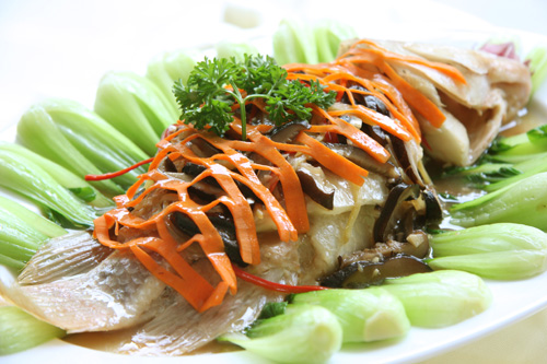 – Rửa sạch cải thìa, xếp lên đĩa rồi đặt cá lên trên, hấp chung với nấm đông cô khoảng 20 phút cho đến khi chín.