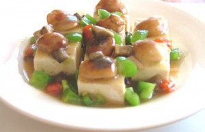 8. Rưới đều nước xốt dầu hàu vừa thực hiện lên hỗn hợp rau củ xếp trên đậu hủ, trang trí ngò, dọn dùng nóng.