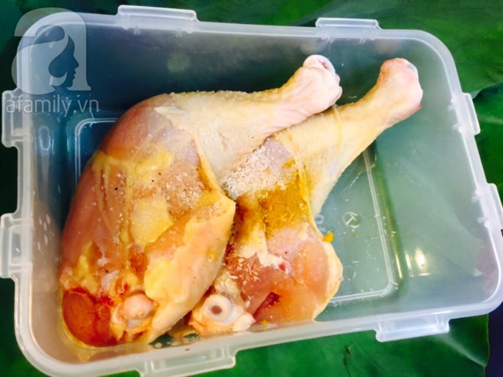 Gà các bạn sơ chế sạch, để ráo nước. Bạn lấy dao khía chéo vào thịt gà để khi ướp thịt được ngấm gia vị. Bạn ướp thịt gà với gia vị, bột nghệ. Tùy vào lượng lượng gà nhiều hay ít mà bạn ướp cho vừa miệng. Bột nghệ không nên cho nhiều quá sẽ bị át hết hương thơm của lá sen khi hấp và khiến thịt gà bị vàng. Đảo đều và để thịt gà ngấm gia vị ướp ít nhất 30 phút. Nếu bạn làm nguyên cả con gà thì thời gian ướp ít nhất là phải trong 2 giờ mới đủ để gà ngấm gia vị.