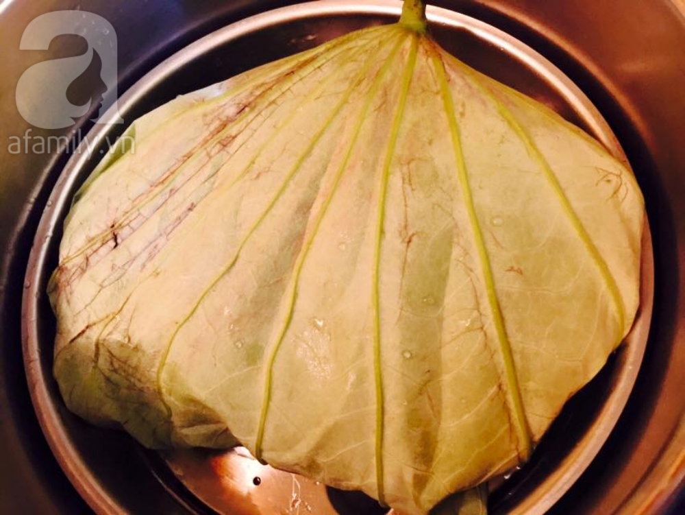 Chuẩn bị sẵn 1 nồi hấp cách thủy, cho lá sen gói thịt gà vào hấp trong khoảng 20 phút là thịt gà chín. Nếu bạn hấp nguyên cả con gà thì thời gian hấp phải khoảng 40-45 phút mới đủ nhiệt cho gà chín mềm.