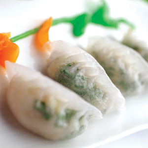Cho há cảo đã làm vào xửng, hấp khoảng 15 phút. Dùng nóng với nước tương hoặc tương ớt.