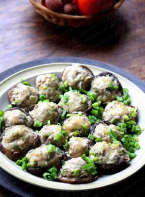 Dùng hỗn hợp thịt này bọc các đầu nấm cho tròn đều.